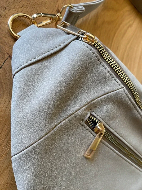 Bandoulière banane daim velours amovible et ajustable Double zip doré à l'avant 35x16x8cm.