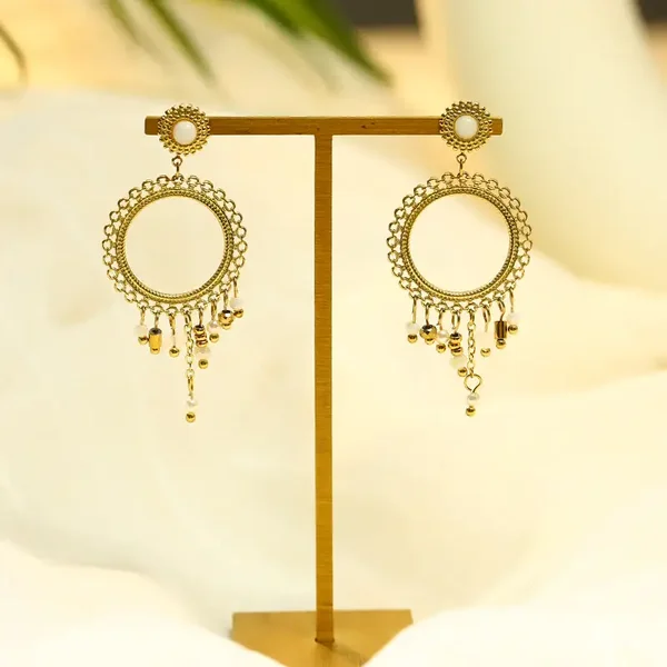 Boucles d'oreilles bohème en acier inoxydable et perles blanches