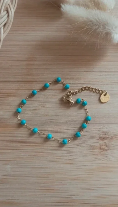 Pierres turquoises. 15cm + 3cm de chaînette de réglage.