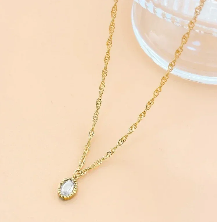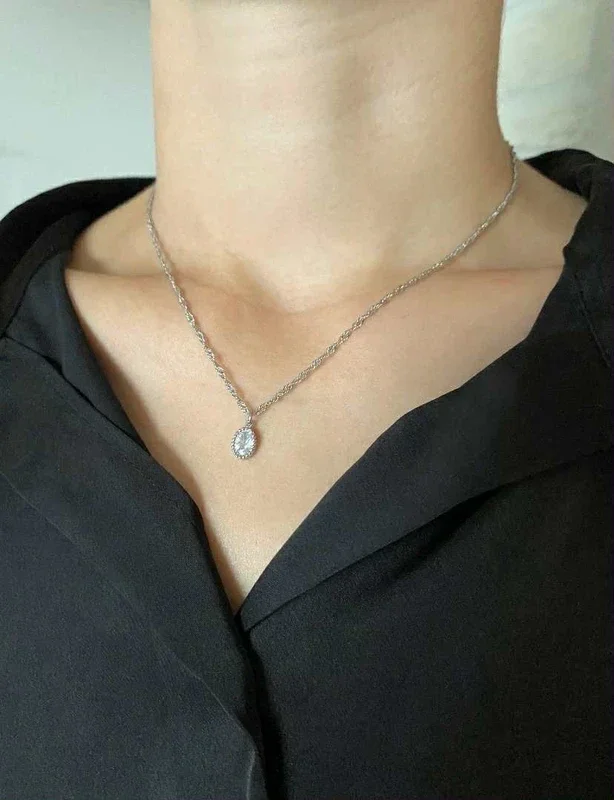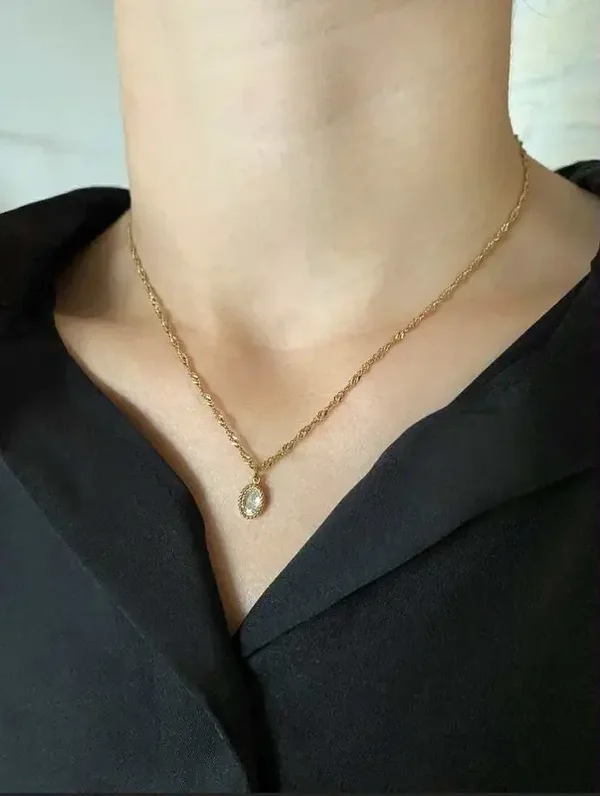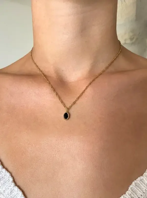 Collier chaînette entrelacée et pendentif pierre noire 41cm+5,5cm de chaînette réglable.
