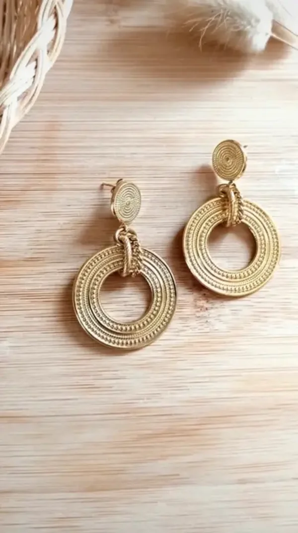 Pendantes 5,3cm. Anneaux 1,3cm de diamètre et le plus grand 3,2cm.