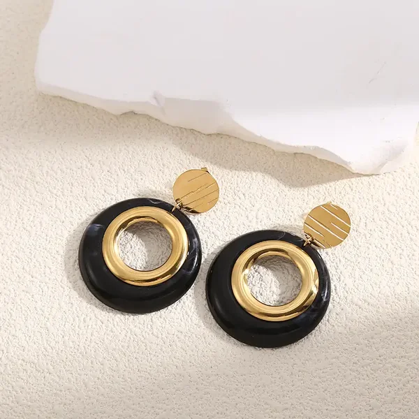 Boucles d’oreilles acier inoxydable doré et noir marbrées
