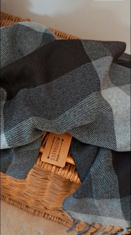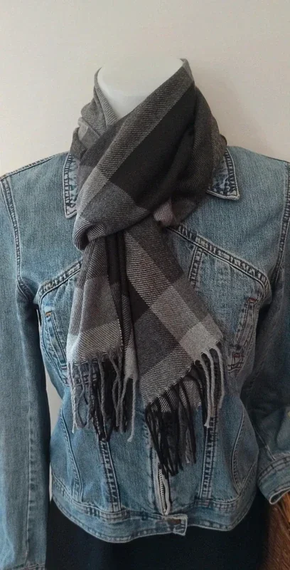 Echarpe mixte à carreaux gris-noirs