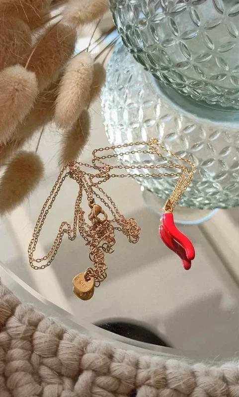 Collier acier inoxydable piment rouge