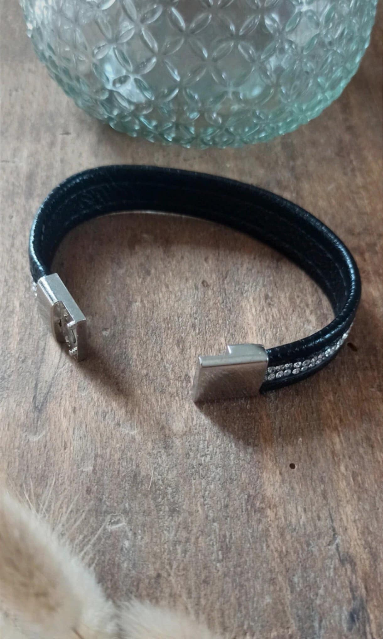 Bracelet cuir aimanté avec strass