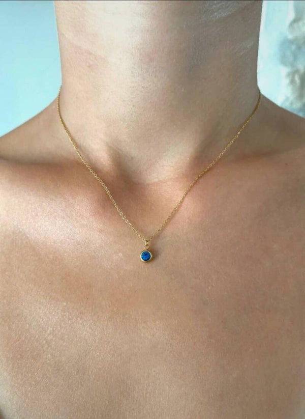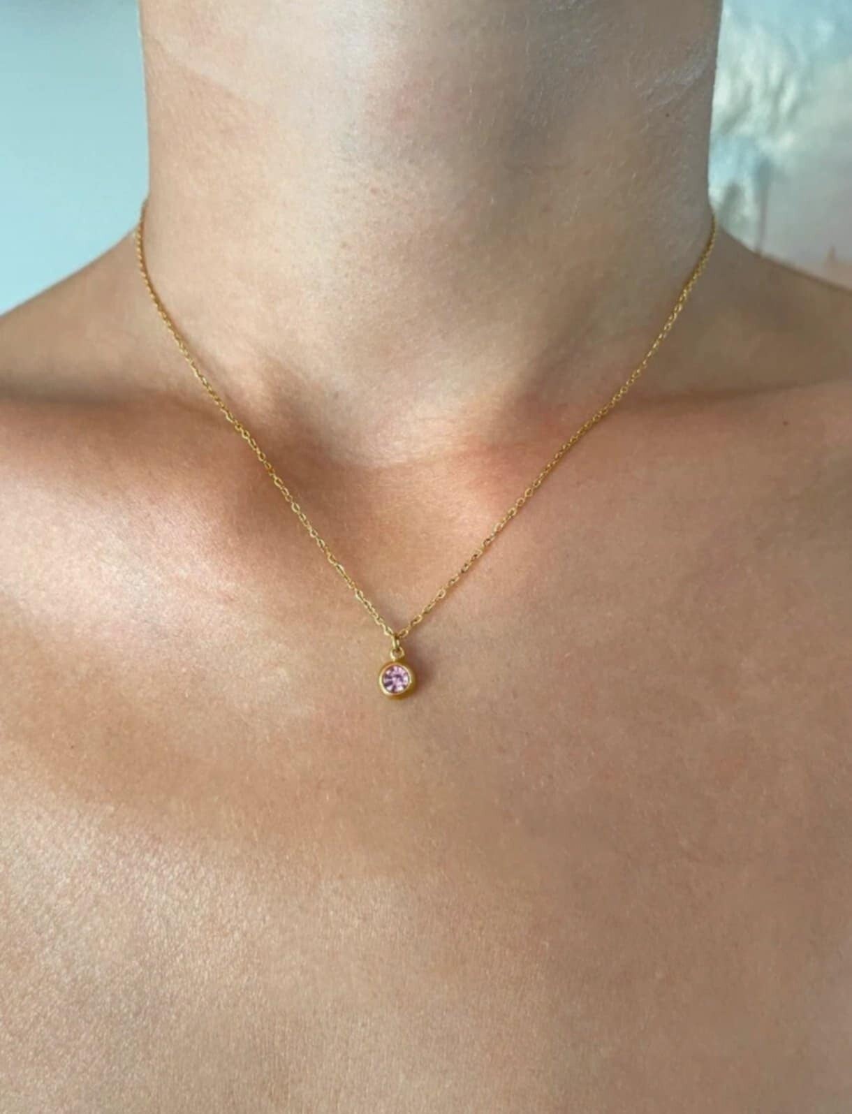 39cm + 5,5cm de chaînette de réglage. Pendentif strass 6mm.