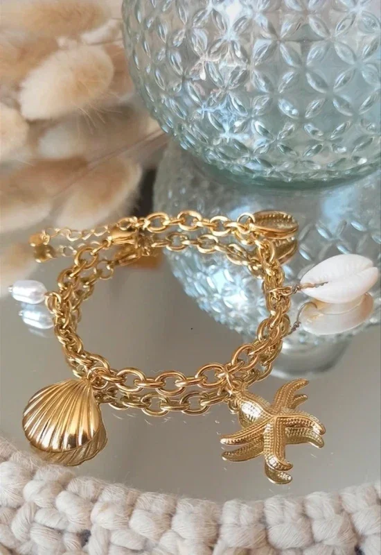 Breloques coquillages, étoile de mer perle d'eau douce.
