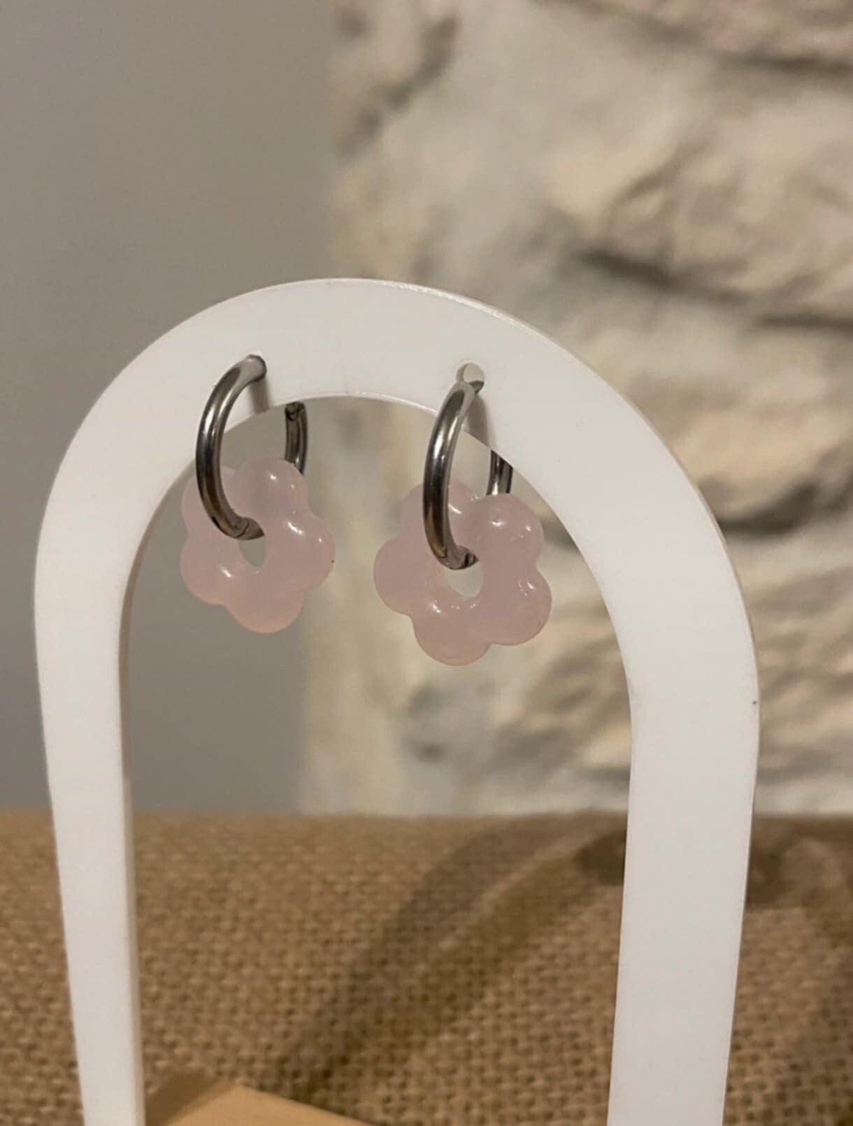 Mini créoles acier inoxydable pampilles fleurs en verre