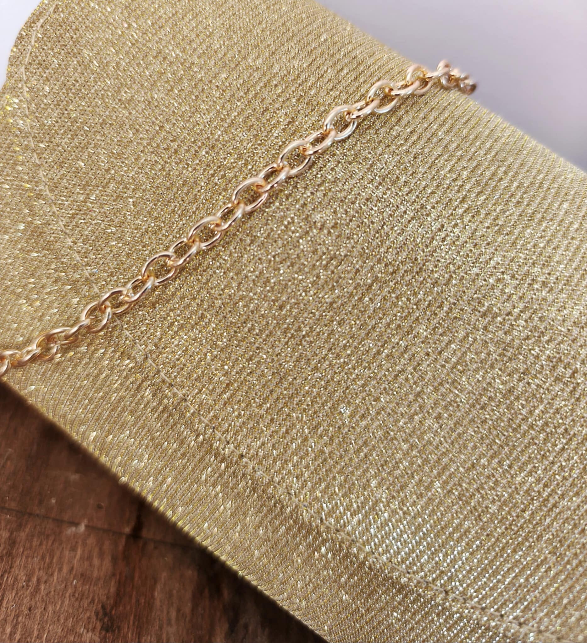 Chaîne bandoulière amovible en métal doré ou argenté.