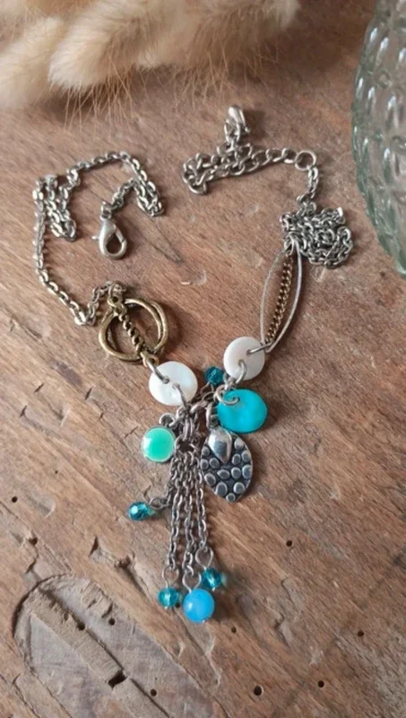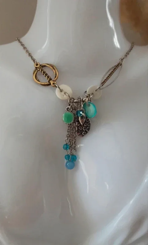 Collier vintage perles de nacre, émail et cristal de synthèse.