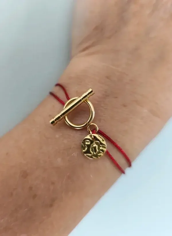 Ajustable au poignet (13,5cm mini). Pampille martelée.