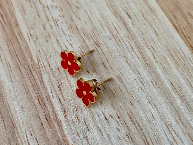 Boucles d'oreilles clous fleurs émail rouge acier inoxydable